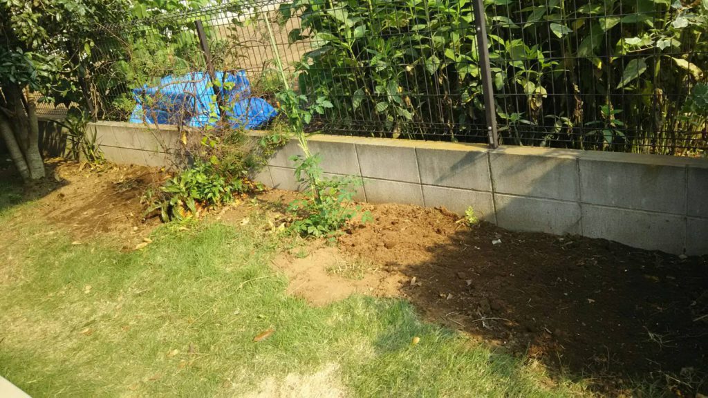 高さ3m程の金木犀を伐採した後に抜根しました。