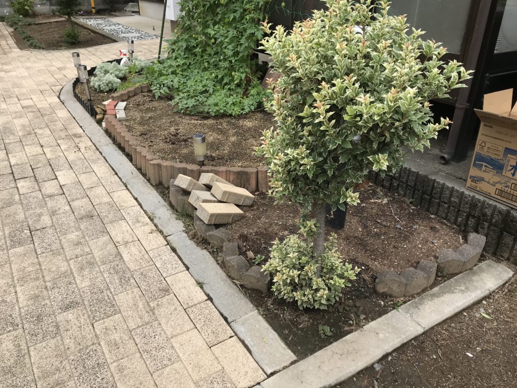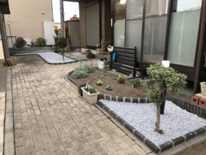 岡山県倉敷市で花壇と砂利敷きの施工を行いました。